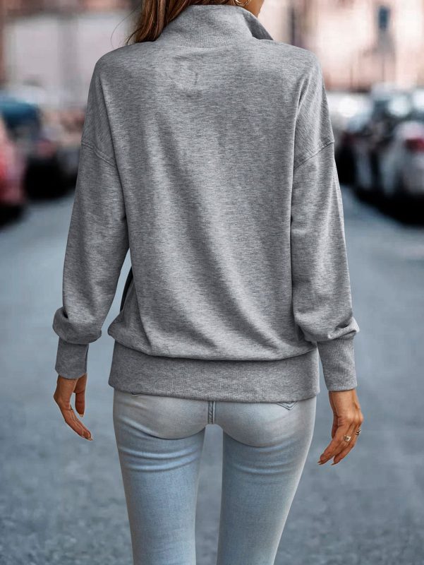 Asymmetrical Sage Green Ring Zipper Sweatshirt Top