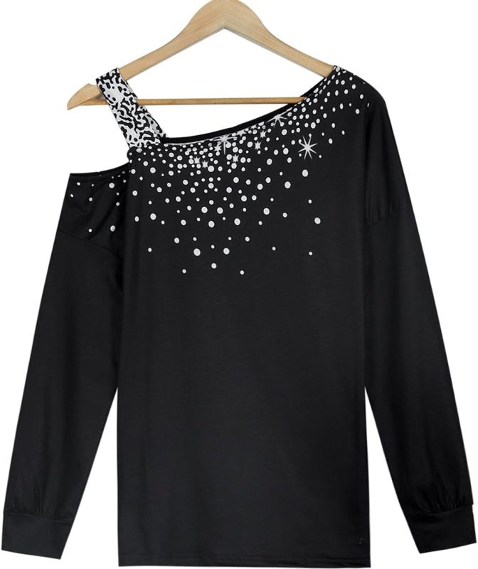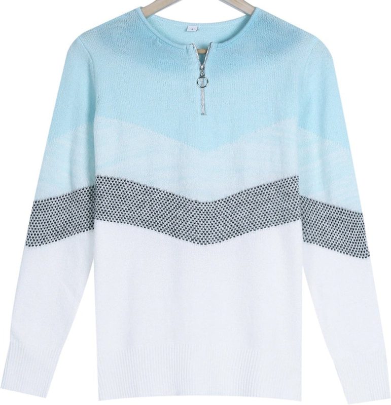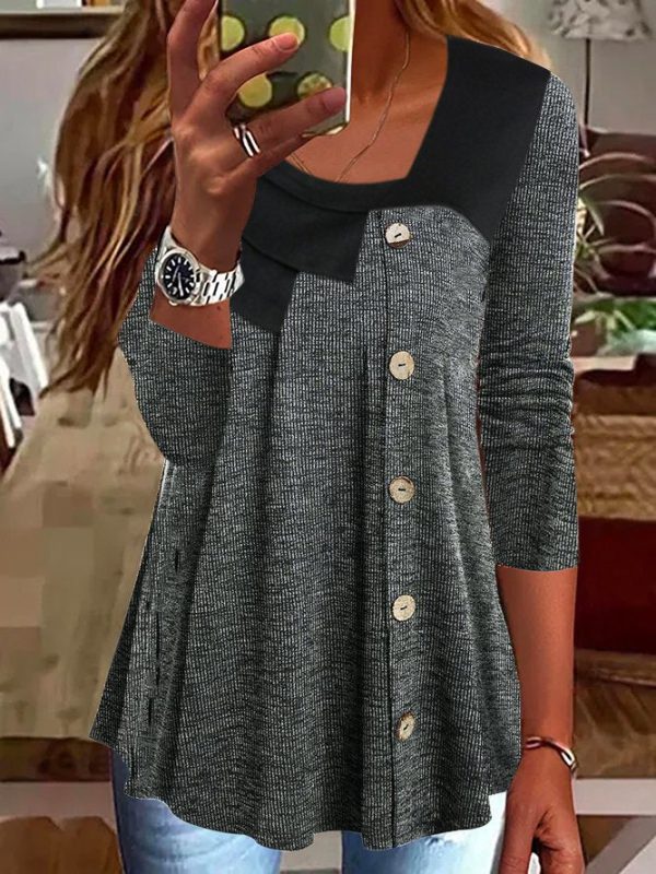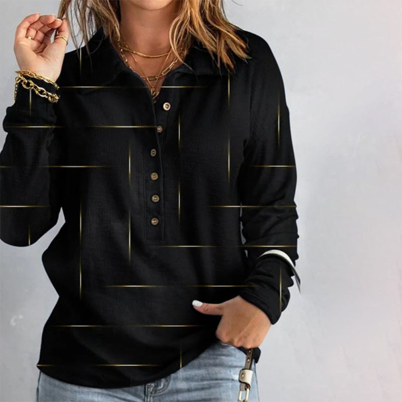 Zig Zag Stripe Button Front Fold-Over Collar Top
