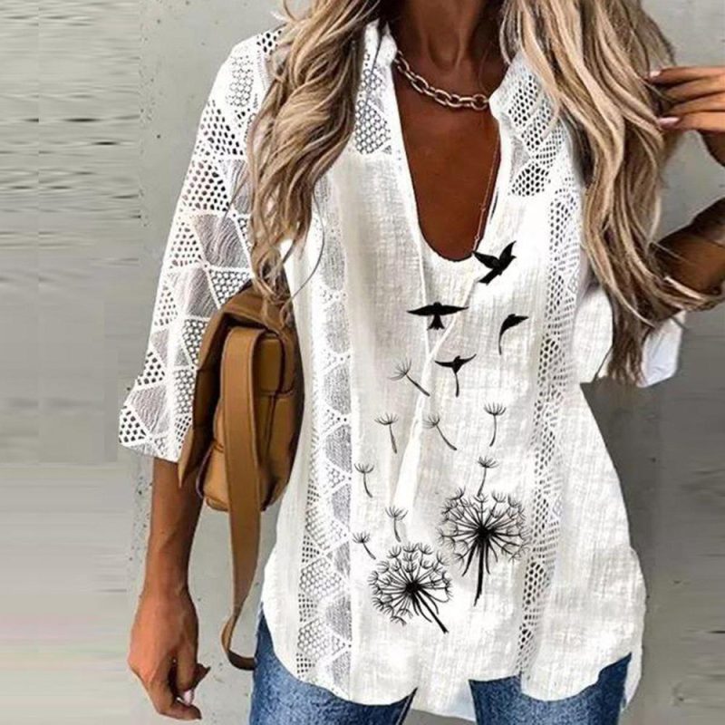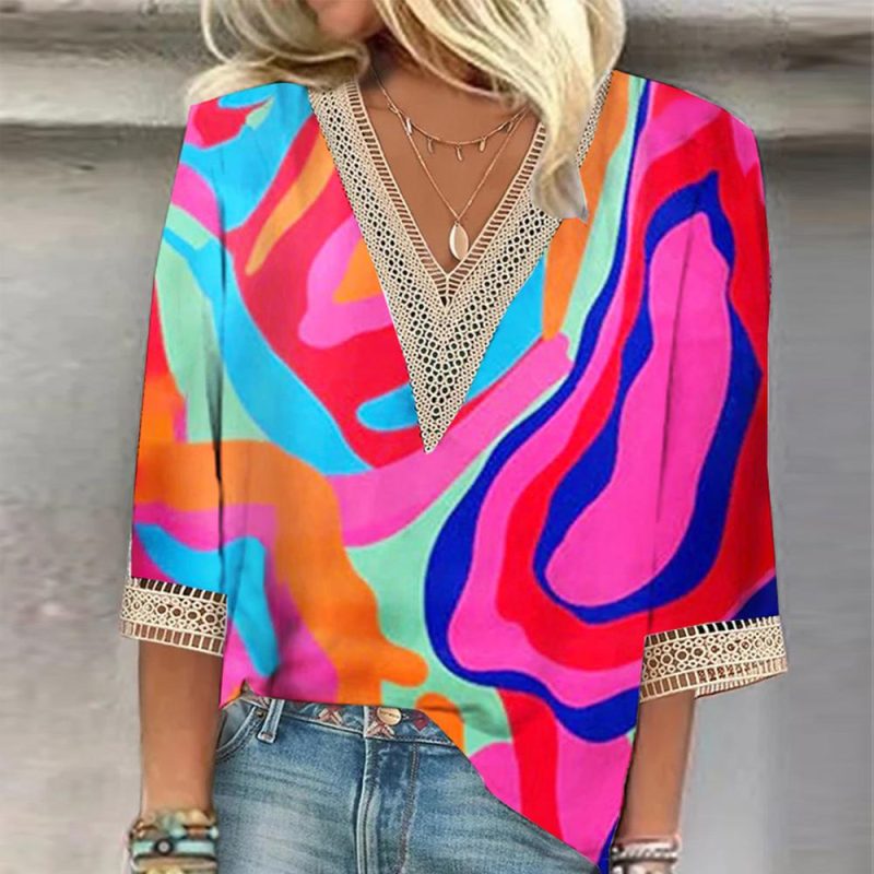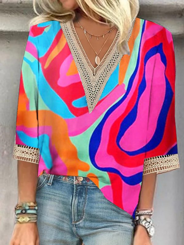 Casual Print V-Neck Top