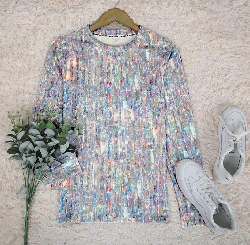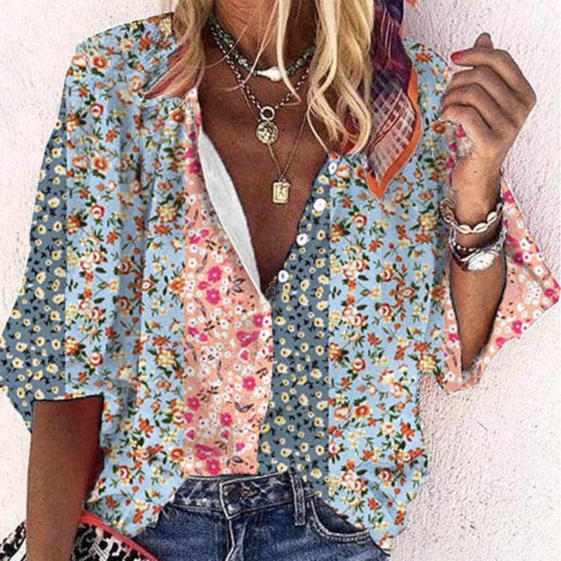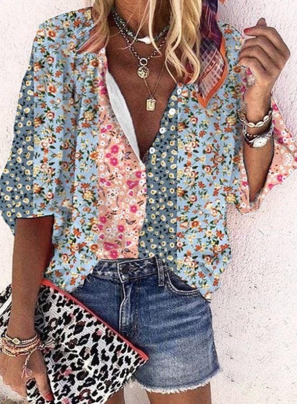 Colorful Mini Flower Print Long Sleeve Blouse Top