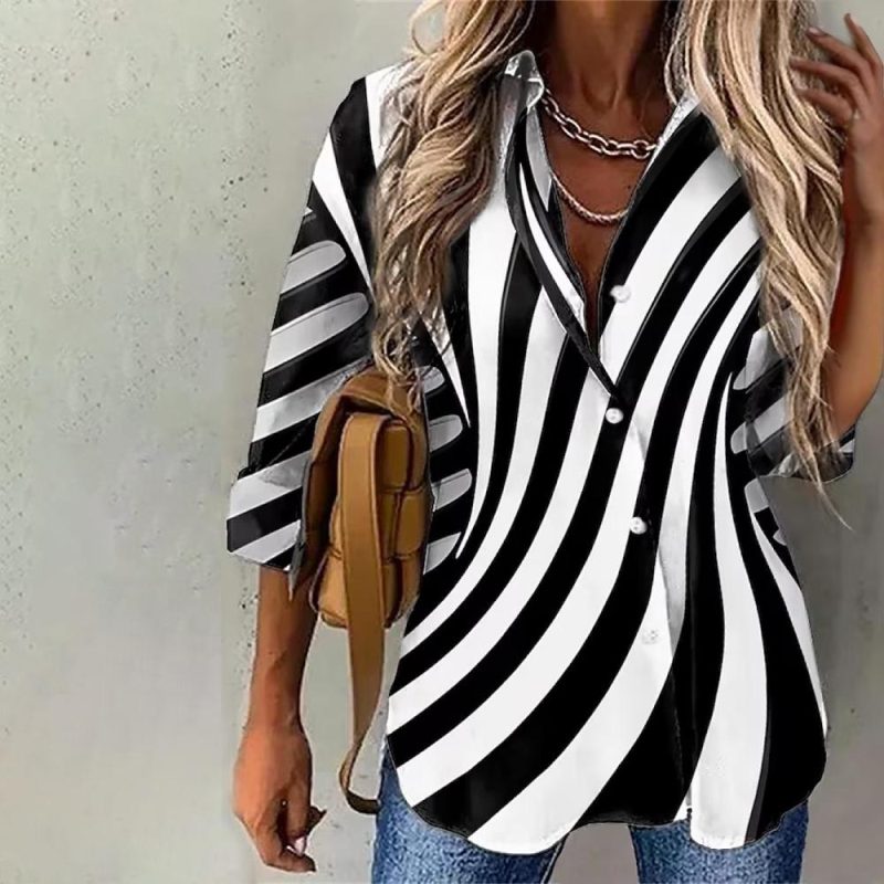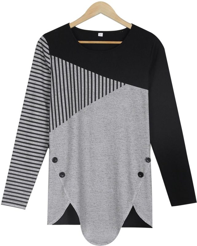 Modern White Polka Dot Relaxed Gray Blouse Tunic Top