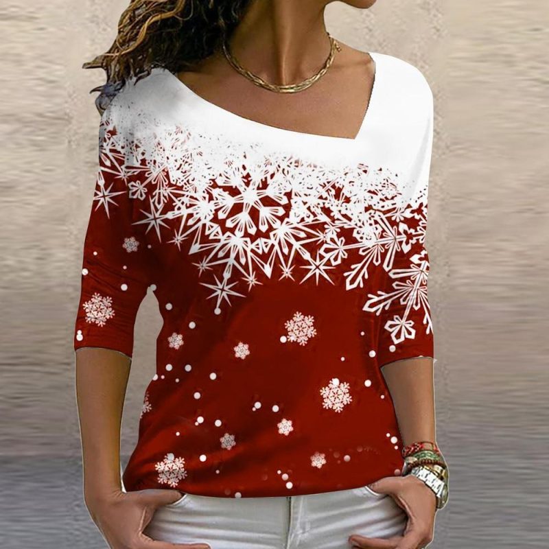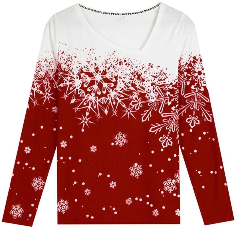 Red Holiday Snowflake Asymmetrical Long Sleeve Top