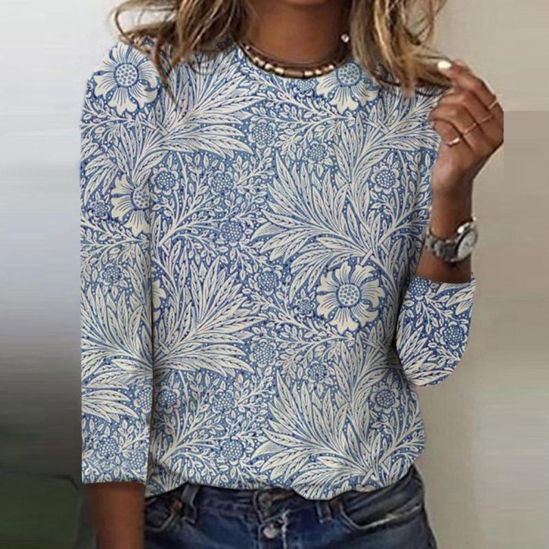Retro Round Neck Long Sleeve Top
