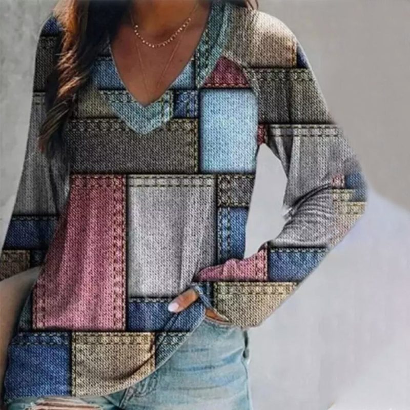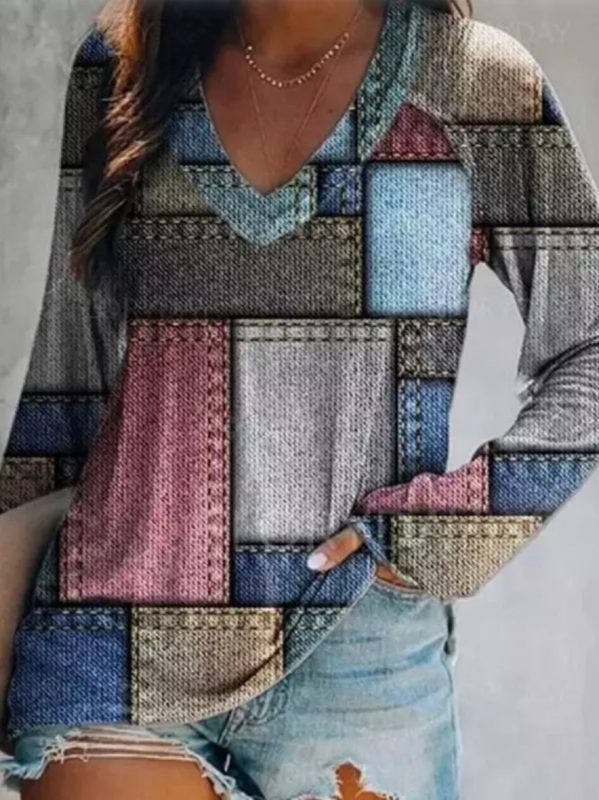 Color Block Patchwork Print Long Sleeve Top