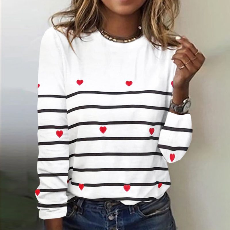 Heart Navy Stripe Long Sleeve Top